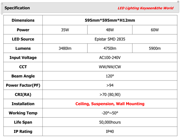 48W 595*595mm ,4750LM 5years warranty Panel Light